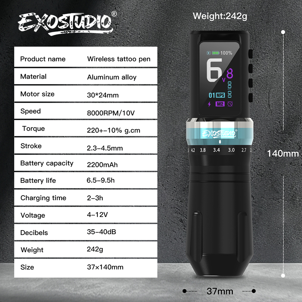 EXOSTUDIO GTR-2 Wireless Adjustable Stroke Tattoo Battery Pen Machine With 2 Batteries (Free Shipping)