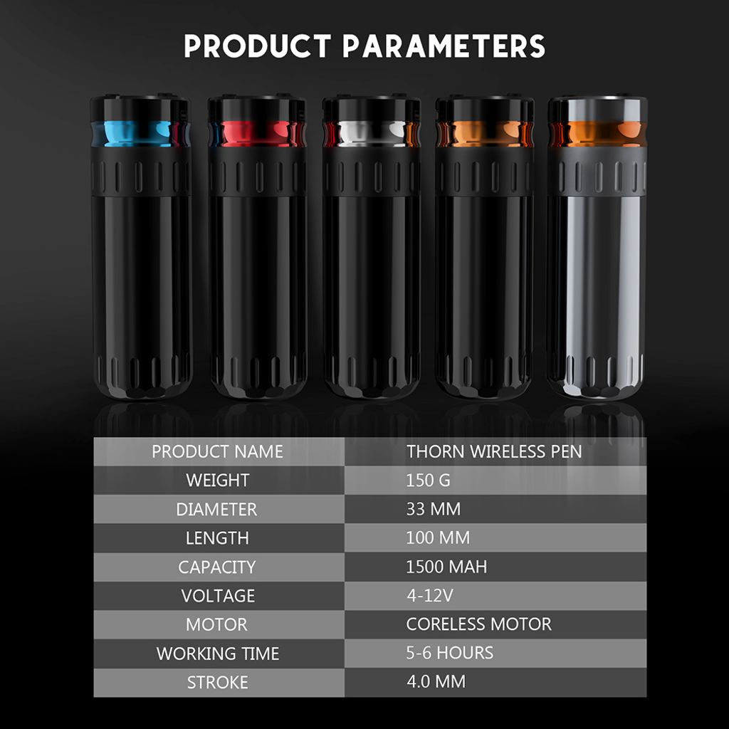 3. Wireless & Unlimited: Two sets of large-capacity replaceable batteries ensure the unlimited and wireless work of tattooing.
