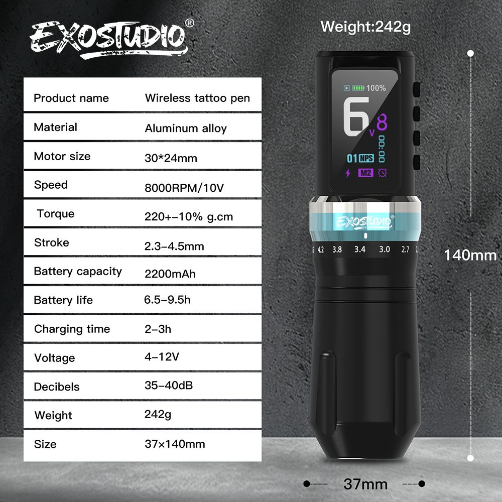 EXOSTUDIO GTR-2 Wireless Adjustable Stroke Tattoo Battery Pen Machine With 2 Batteries (Free Shipping)