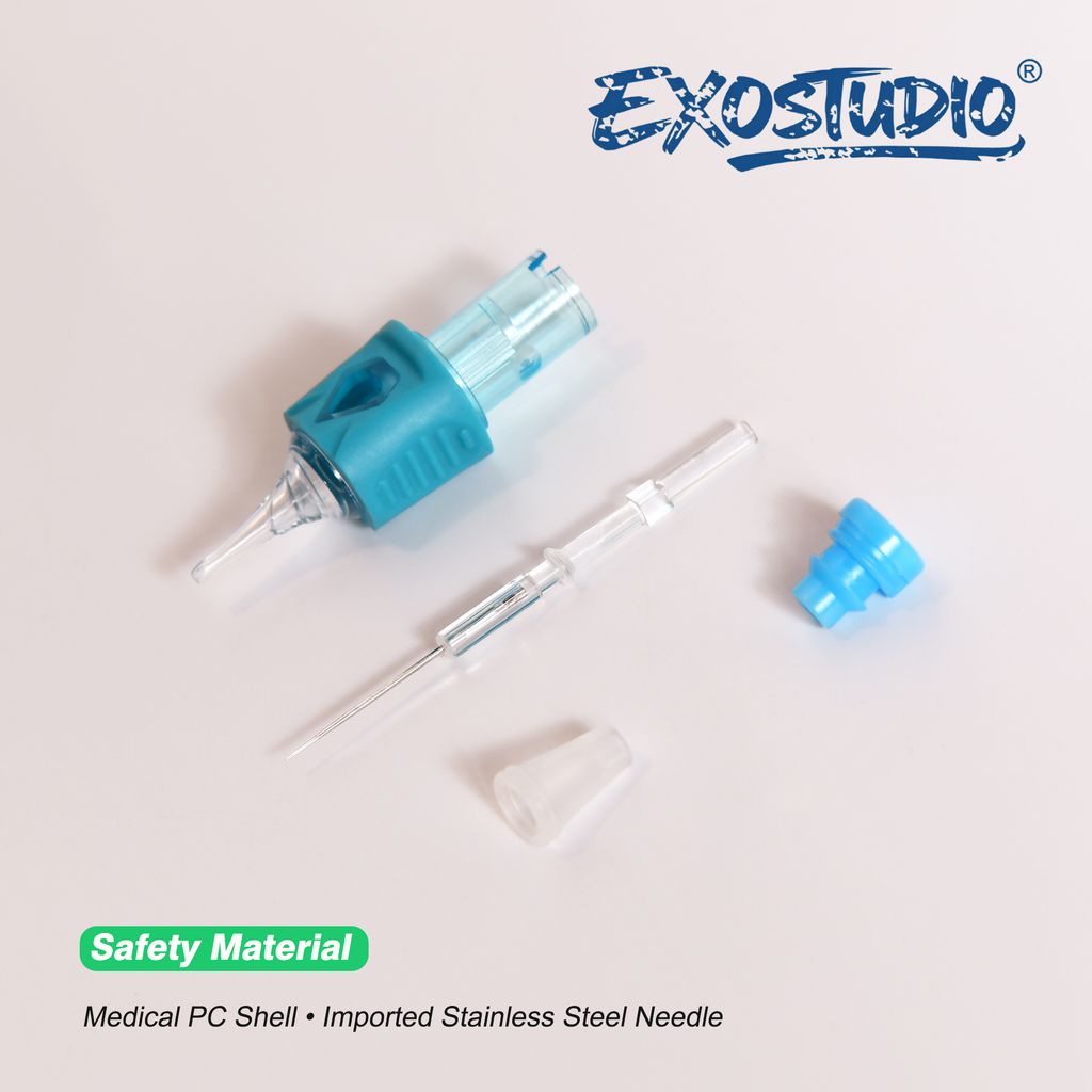 Developed by EXOSTUDIO® for professional tattoo artists, these premium cartridge needles combine precision engineering, ergonomic comfort, and an eco-inspired modern aesthetic. Every detail—from the color choice to the grip texture—reflects our commitment to functionality, safety, and refined design.